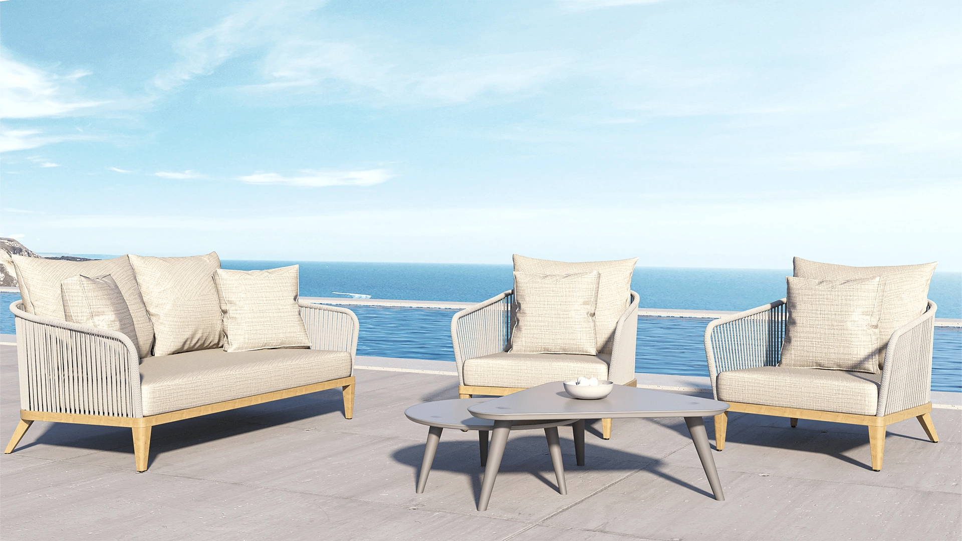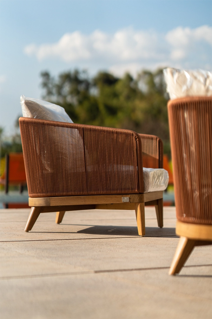 A coleção Cancun Madeira une o aconchego da madeira natural à resistência da corda náutica, criando peças que encantam pelos detalhes e acolhem pelo conforto. Com estrutura em madeira nobre, tramas artesanais em corda náutica e estofados generosos, cada item da linha foi pensado para oferecer bem-estar, sofisticação e durabilidade em ambientes externos e internos.