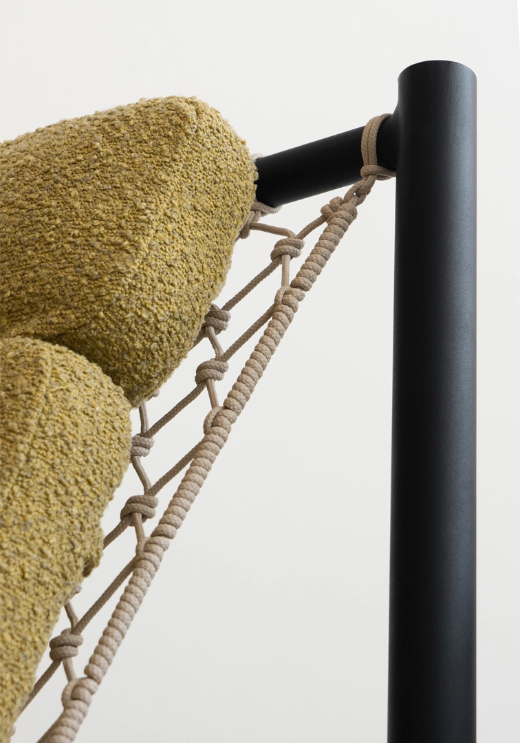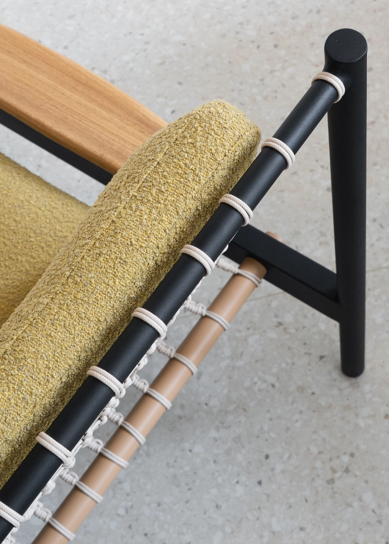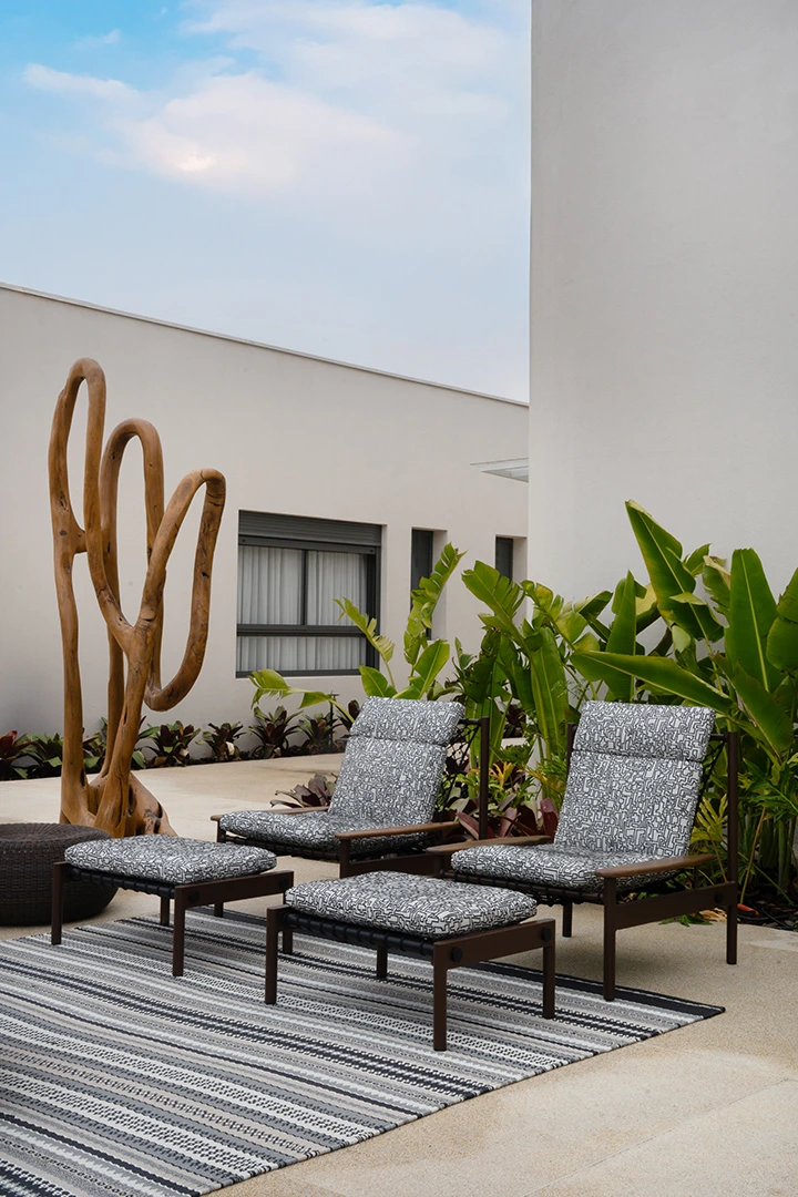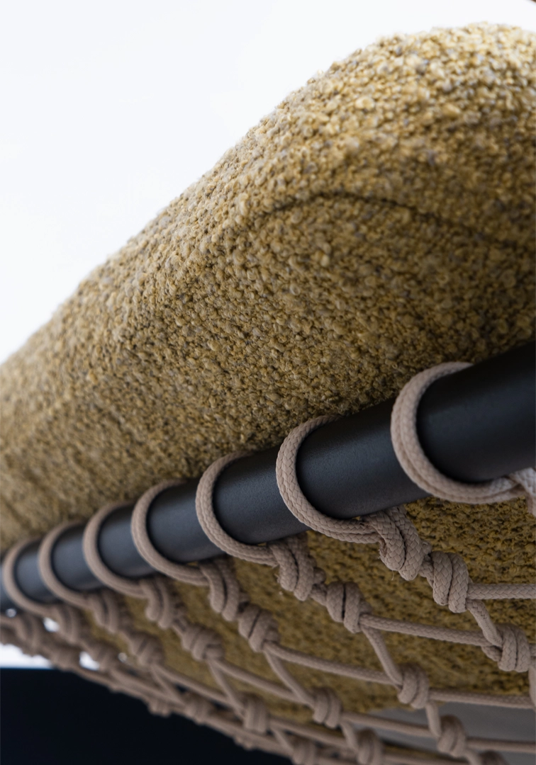 A coleção Catamarã traz consigo a sensação de liberdade e movimento suave, inspirada no espírito náutico. Sua estrutura em alumínio confere leveza e resistência, enquanto o trançado em corda náutica envolve com precisão e fluidez. Os braços com detalhe em madeira aquecem o olhar, equilibrando o moderno e o natural com sutileza.