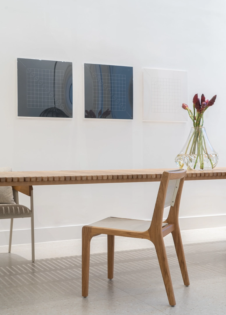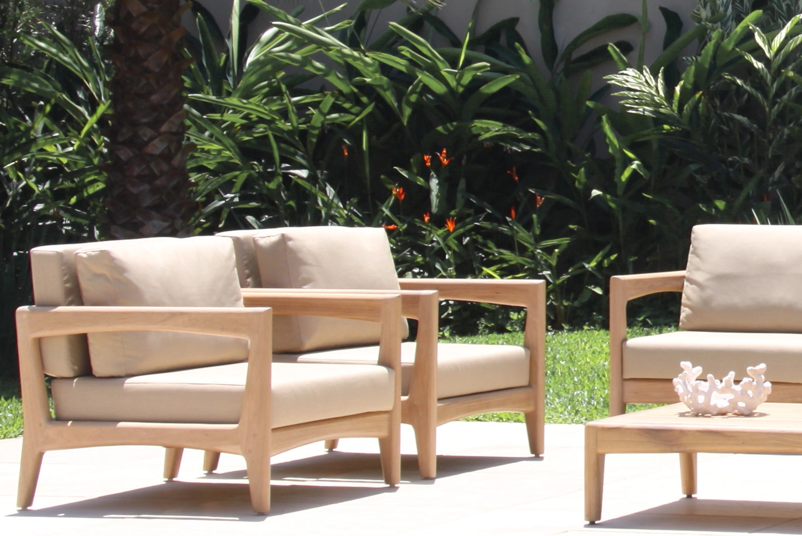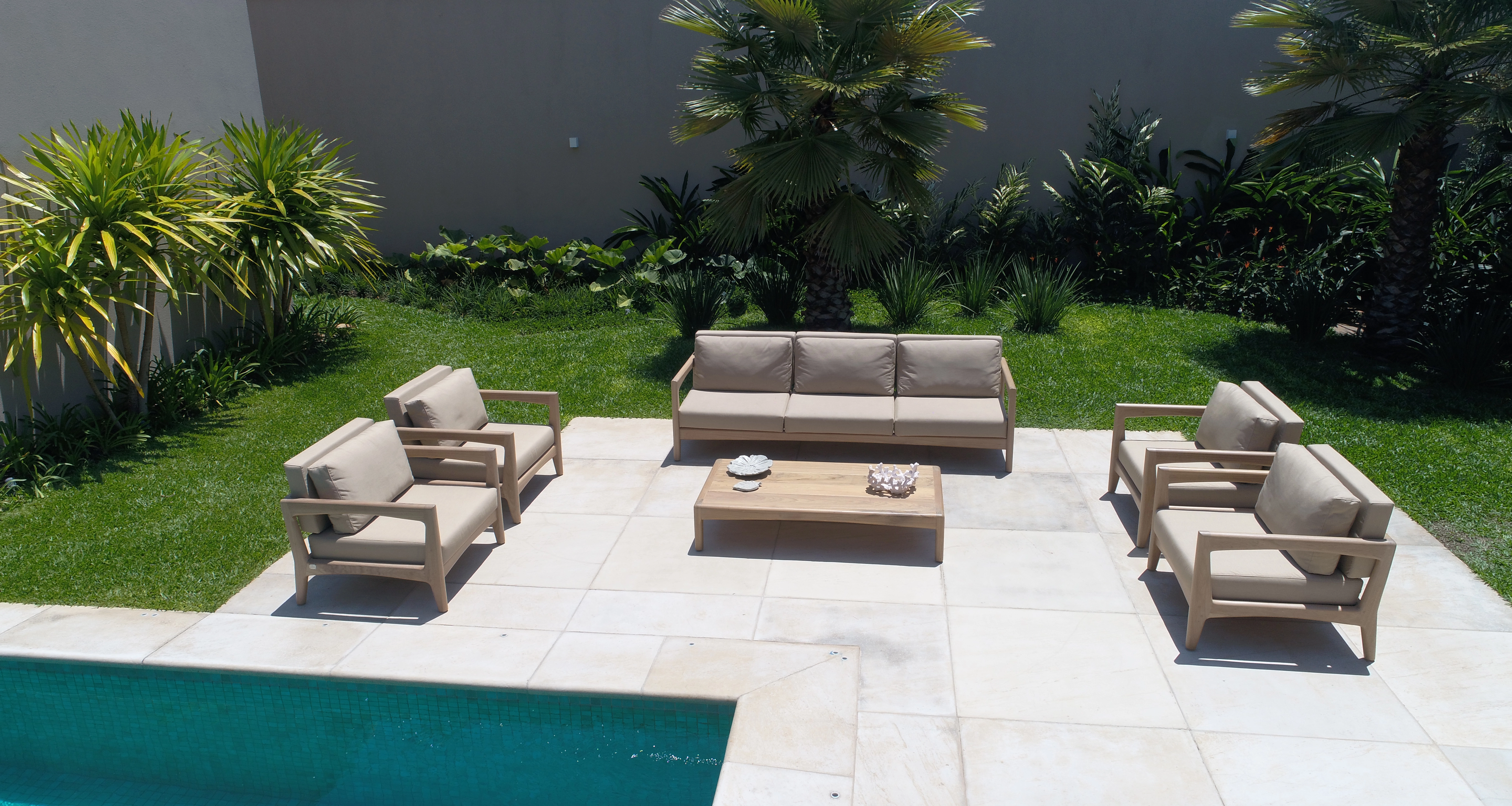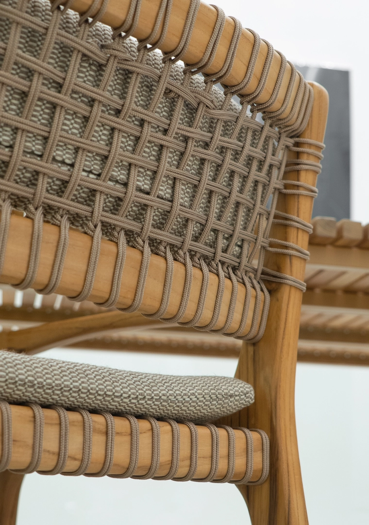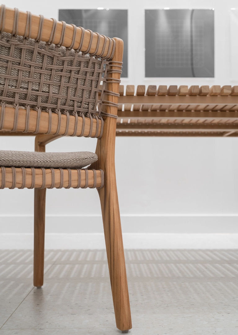 A coleção Palazzo, é uma linha que se adapta tanto para externa como para o interno, a geometria da estrutura de suporte apresenta sofisticados equilíbrios de linhas retas e curvas, mas esta não é apenas uma escolha estética. De fato, a estrutura com sua superfície inquebrável é projetada para facilitar a manutenção da madeira, que é fácil de tratar se necessário.