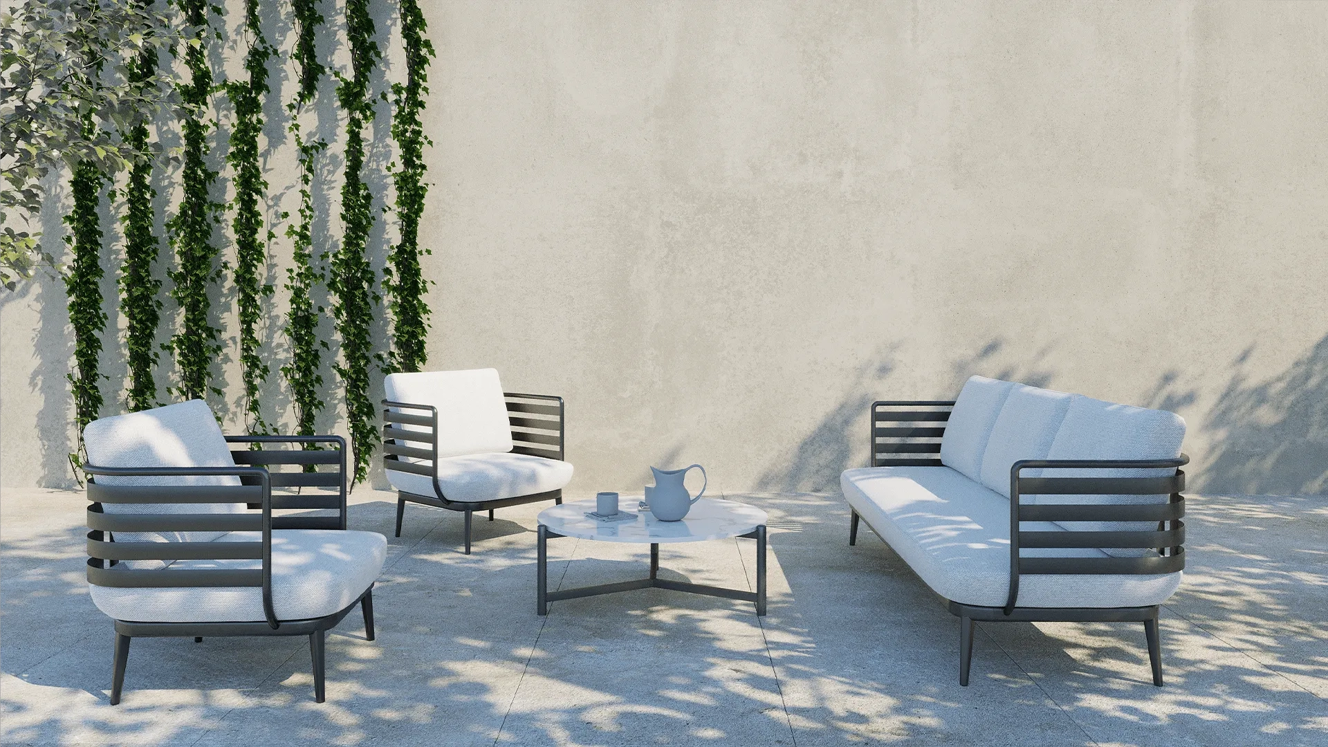 A Panier traz uma proposta visual limpa e ousada, onde cada traço é pensado para expressar leveza com personalidade. A estrutura em alumínio, com linhas horizontais marcantes, cria uma silhueta moderna que combina rigidez gráfica com fluidez no uso. O estofado, solto e convidativo, suaviza o desenho geométrico e proporciona uma sensação de aconchego imediato. A coleção equilibra proporção e design com elegância silenciosa, tornando-se ideal para compor espaços que valorizam autenticidade e sofisticação discreta.