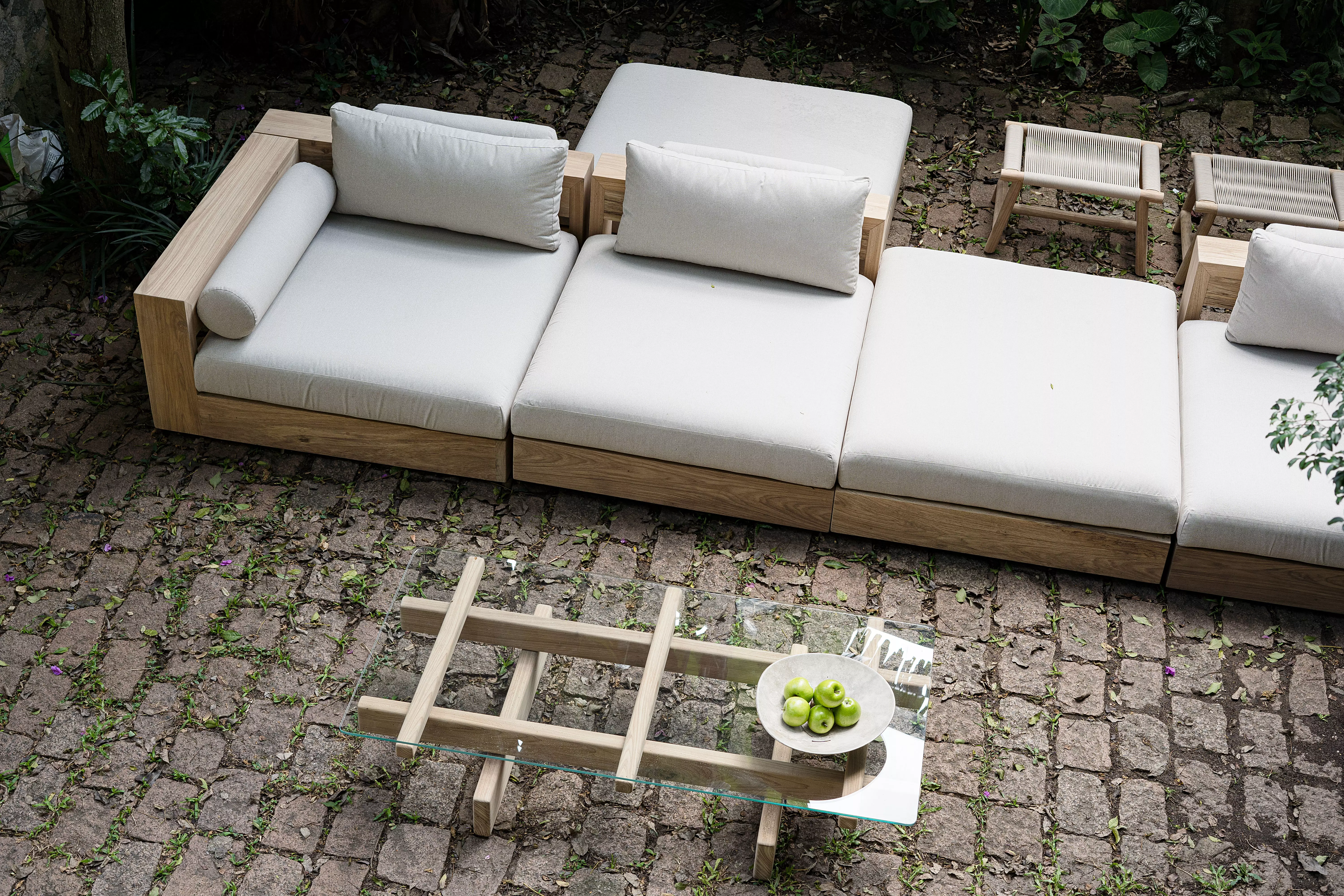 Piazze celebra os encontros com o tempo, com o espaço e com as pessoas. Sua estrutura em madeira evoca a solidez das praças mediterrâneas, enquanto os estofados amplos convidam ao relaxamento. Uma coleção pensada para momentos de contemplação e conexão.
