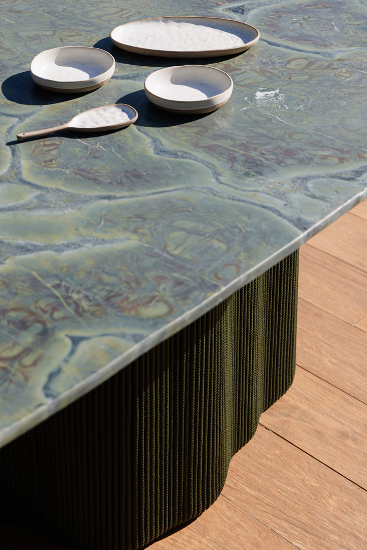 Mesa de Centro Onda Singapura com Tampo em Pedra Natural de Design Orgânico