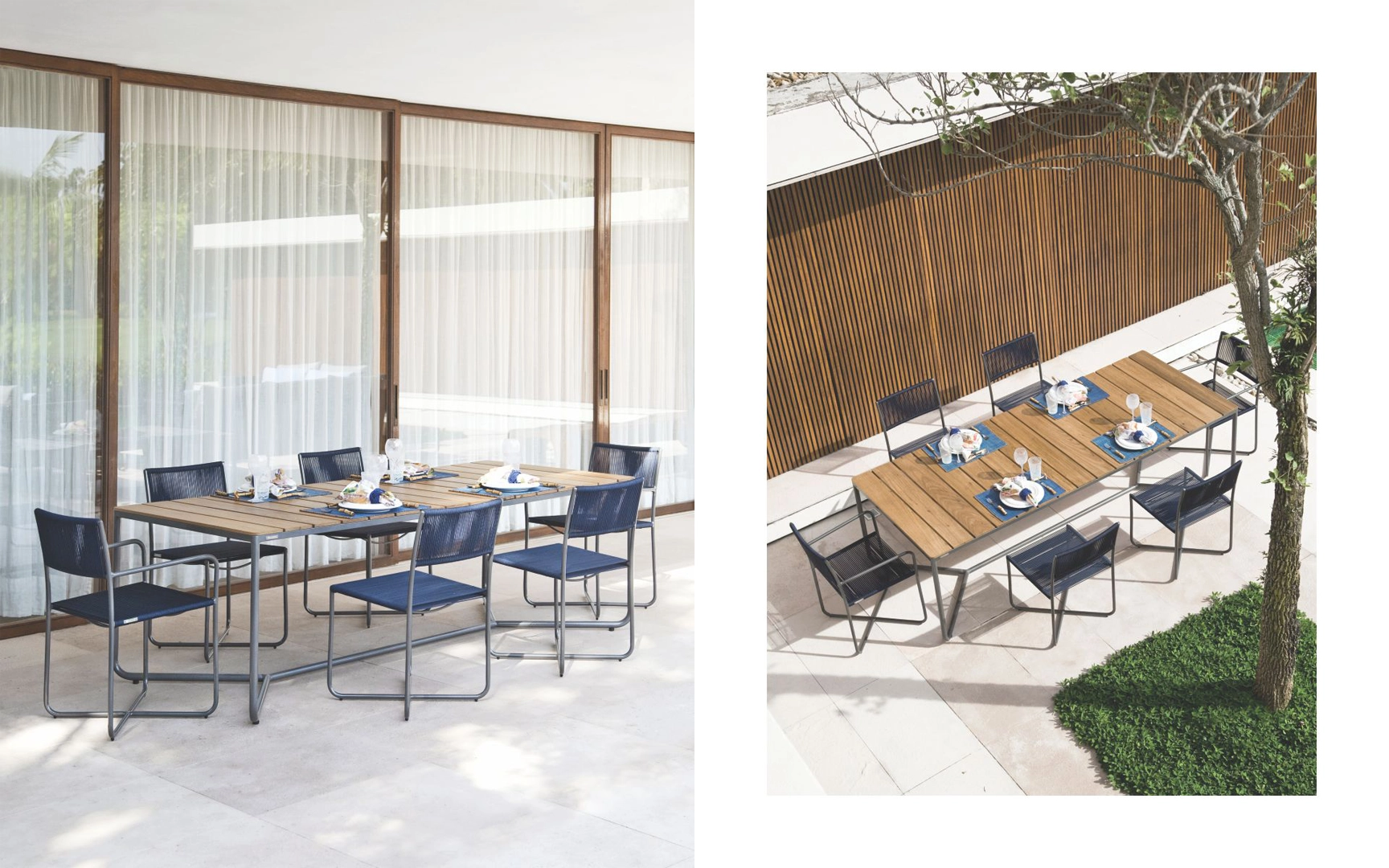 O conforto é combinado com a beleza através de uma estética leve e preciosa. Sofás, poltronas e chaises longues também são elementos modulares e versáteis. Um sistema de assentos onde jogos de transparência e as cores das cordas criam ambientes unicos