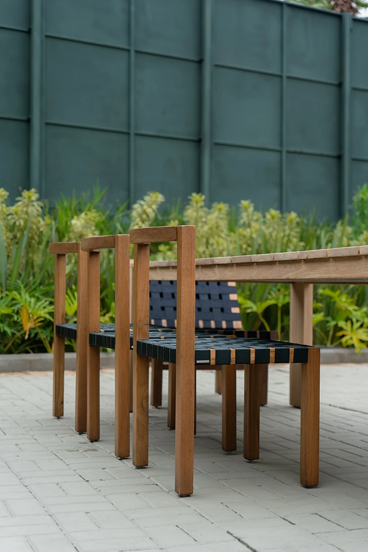 Esta cadeira minimalista para varandas e áreas internas tem raciocínio geométrico e elementar. Com DNA quadrado, todos os perfis estruturais em madeira maciça são essenciais para seu funcionamento e dimensionados para garantir estabilidade e resistência ao tempo com o mínimo de material. Essa orientação promove uma estética leve e simples. O conforto é alcançado pela curvatura do perfil no encosto e pela flexibilidade da trama feita à mão no assento. A cadeira TT enquadra o vazio com um "traço" contínuo e combina a delicadeza do trabalho manual com os processos industriais.