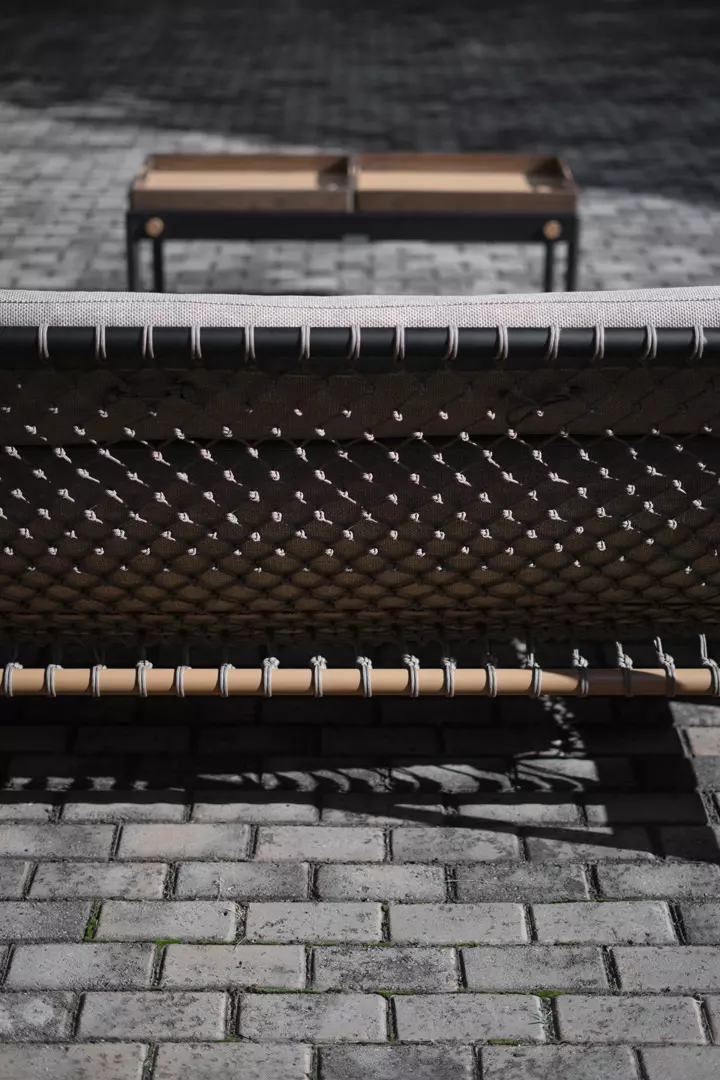 A coleção Catamarã traz consigo a sensação de liberdade e movimento suave, inspirada no espírito náutico. Sua estrutura em alumínio confere leveza e resistência, enquanto o trançado em corda náutica envolve com precisão e fluidez. Os braços com detalhe em madeira aquecem o olhar, equilibrando o moderno e o natural com sutileza.