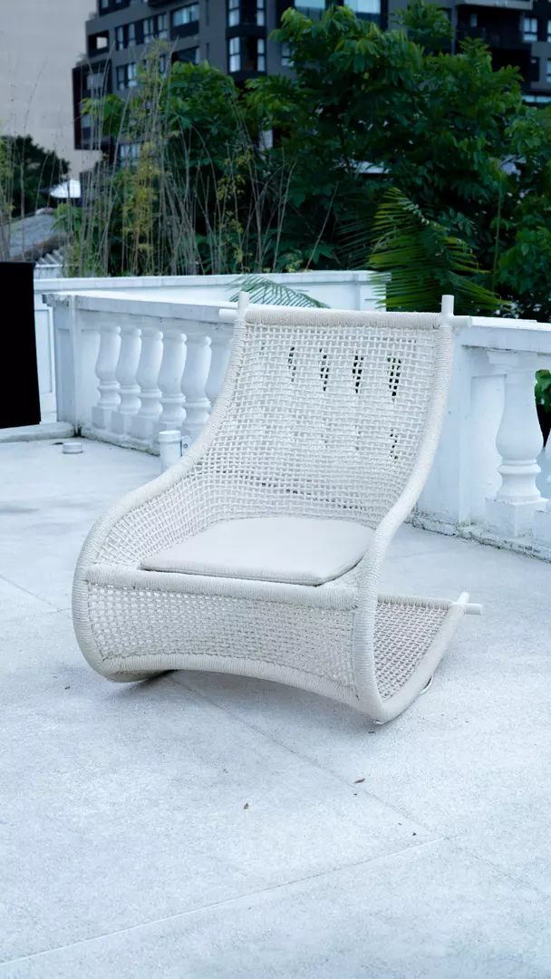 Esta proposta apresenta uma cadeira de balanço com apoio para cabeça e braços. Ao explorar uma tipologia pouco recorrente no design contemporâneo, a peça resgata a cadeira de balanço em uma linguagem atual, por meio do uso de novos materiais e de uma forma mais iconográfica e minimalista.